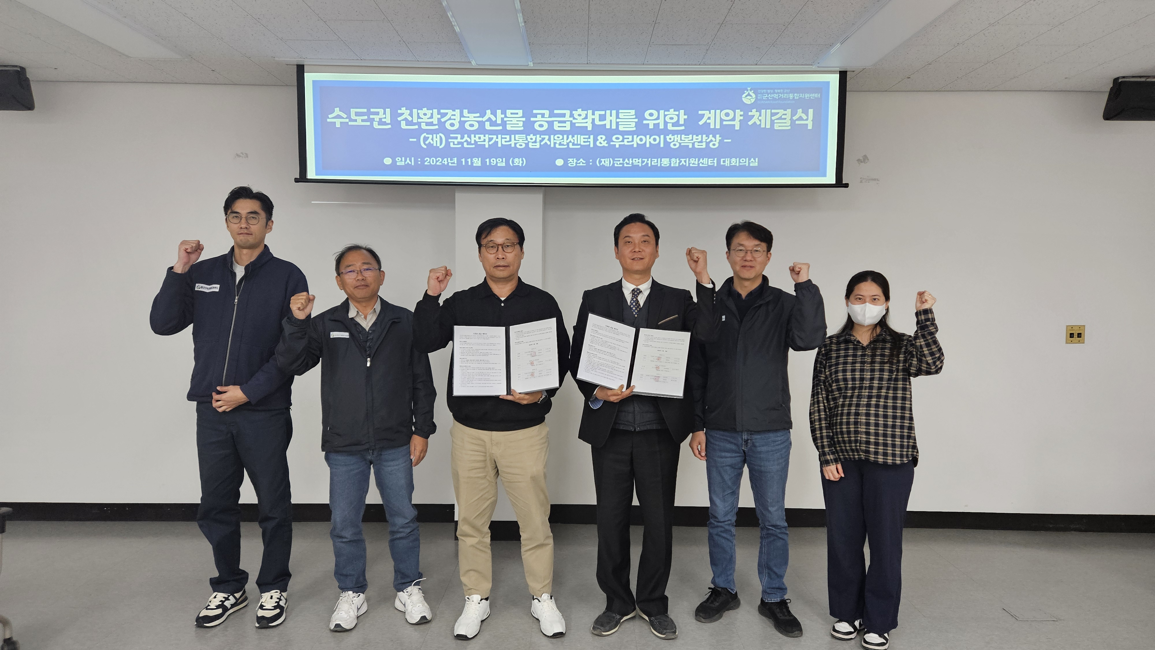 군산먹거리통합지원센터(센터장 이창한)와 ㈜우리아이행복밥상(대표 김도윤)은 지난 19일 도농 상생 공공급식사업의 가치를 지속적으로 이어가기 위한 계약을 체결했다.